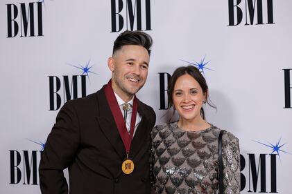 2025 BMI Country Awards - Arrivals NASHVILLE, TENNESSEE - NOVEMBER 18: Rodney Clawson and Nicolle Galyon attend the 2025 BMI Country Awards at BMI on November 18, 2025 in Nashville, Tennessee. (Photo by Tibrina Hobson/Getty Images) (Tibrina Hobson/Getty Images)